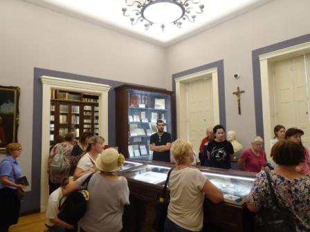 Knihovníci sa rozdelili na dve skupiny a postupne navštívili tento historický klenot a následne Ostrihomskú Bibliotéku, ktorá je jednou z najväčších cirkevných knižníc v Maďarsku. Impozantná budova z roku 1853 podľa Józsefa (Jozefa) Hilda bola zrekonštruovaná v roku 2017. V stálych a dočasných expozíciách sú ukryté unikátne poklady.