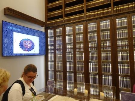 Obdivovali sme liturgický kódex známeho ostrihomského arcibiskupa Tamása Bakócza, ktorý bol takmer zvolený za rímskeho pápeža. Oba zväzky Bakócz - Gradualé spolu vážia viac ako 110 kg, a je jedným z najväčších kódexov na svete. Knižnica okrem iného uchováva aj Notitia Hungariae novae historico- geographica Mateja Bela.