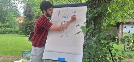 V príjemnom prostredí záhrady Knižnice Juraja Fándlyho v Trnave sa 24. júla uskutočnil piknik. Oddelenie pre deti ho tentoraz zameralo na čítanie a tvorbu ilustrácií. Hosťom Prázdninového superklubu bol šikovný ilustrátor a dizajnér Filip Horník. Jeho pekné ilustrácie zdobia množstvo kníh a časopisov, a tak sme si ich postupne predstavili. Piknikové stretnutie bolo venované aj čítaniu. Deti sa započúvali do úryvku z knihy Kremnickí permoníci. Práve táto knižka od spisovateľky Zuzany Boďovej, ktorú Filip ilustroval, bola aj námetom na kreatívne tvorenie, ktoré prišlo na rad. A keďže kniha je o živote baníckych škriatkov pod vrchmi Kremnice, deťom sa podarili vytvoriť naozaj krásni permonícki škriatkovia.