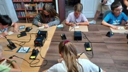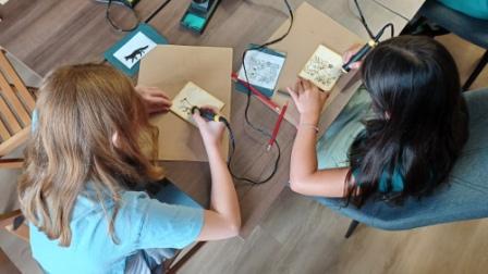 Pútavú techniku umeleckého vypaľovania do dreva nazývanú pyrografia, si 8. júla vyskúšali deti, ktoré navštívili tento zaujímavý workshop v rámci Prázdninového superklubu. V priestoroch študovne si tak mohli precvičiť svoju precíznosť, kreativitu a umelecké vlohy. Deti si najskôr s ceruzkou obkreslili obrázkové predlohy a následne pomocou nástroja s horúcim hrotom na drevenú doštičku obrysy obrázkov vypaľovali. Vznikli skutočne krásne dielka zvieratiek, kvetiniek či postavičiek. Vo štvrtok 10.júla sa uskutoční ďalšie stretnutie Prázdninového superklubu. V knižničnej záhrade bude beseda a workshop s lektorkou biblioterapie Barborou Čaputovou. Téma: Kde začína odvaha?