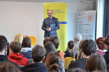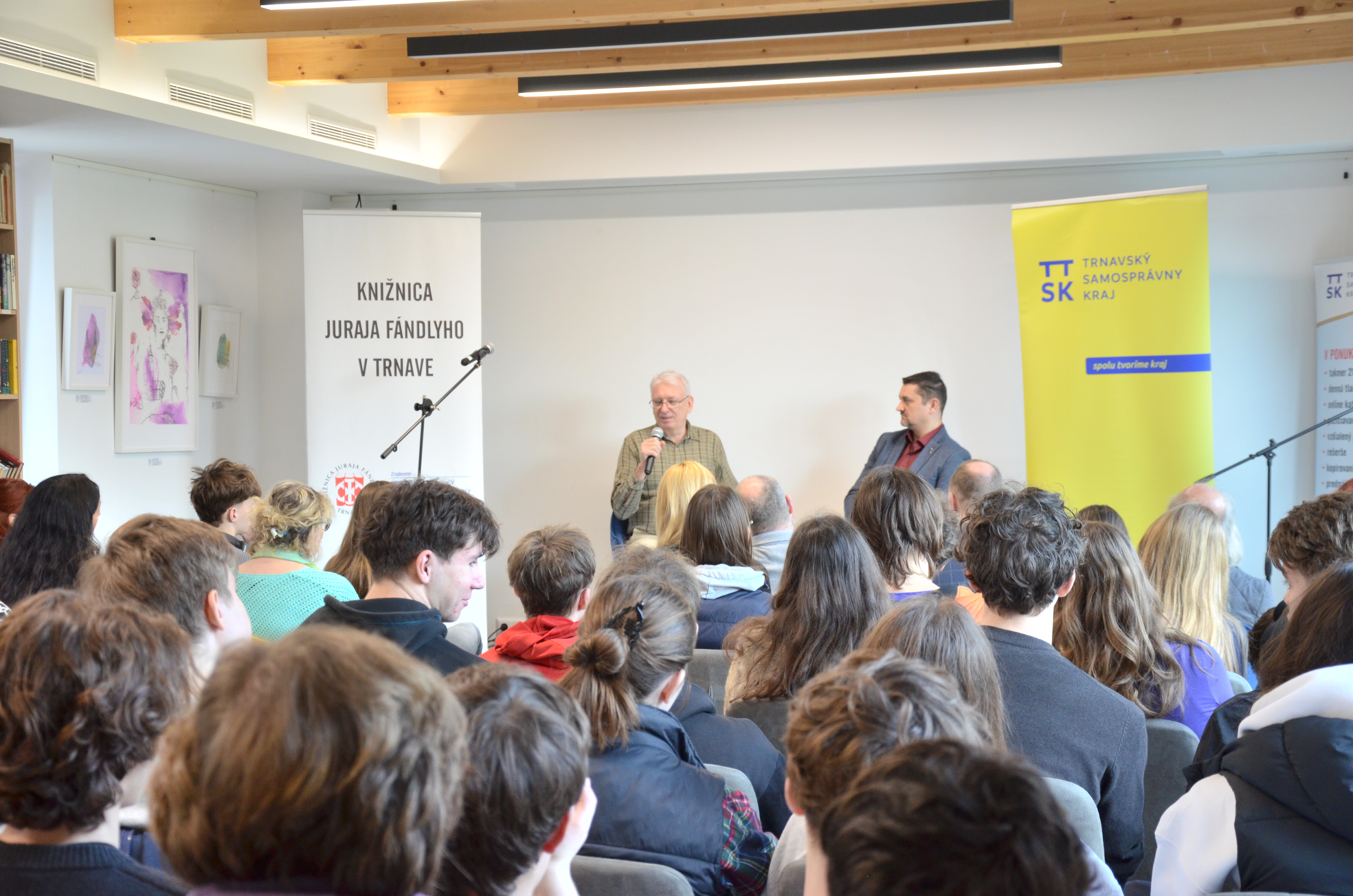 Jozef Viskupič sa vo svojom príhovore k študentom Gymnázia Angely Merici, ktorí sa stali návštevníkmi prvého podujatia, zveril so svojím kladným vzťahom ku knihám: "V nich (v knihách) som sa mohol stretnúť s ľuďmi, ktorí už nie sú, knihy vyžadujú pokoj, ticho, predstavivosť, fantáziu..." a slávnostne podujatie otvoril. Nasledovalo vyhlásenie 9. ročníka celoslovenskej literárnej súťaže pre začínajúcich autorov zo Slovenska i Slovákov žijúcich v zahraničí Literárny salón 2026, ktorého cieľom je podnietiť záujem o tvorivé písanie. Vyhodnotenie sa uskutoční v októbri. Súčasťou otvorenia bolo aj vyhodnotenie a ocenenie najaktívnejších čitateľov knižnice. Župan Jozef Viskupič a riaditeľ knižnice Pavol Tomašovič odovzdali cenu pani Dane Krajčovičovej, ktorá si v roku 2025 požičala z knižnice najviac titulov. No a potom už patrili mikrofóny dvojici Peter Juščák a Martin Jurčo, pretože prvým podujatím Týždňa bola beseda s týmto spisovateľom a publicistom.