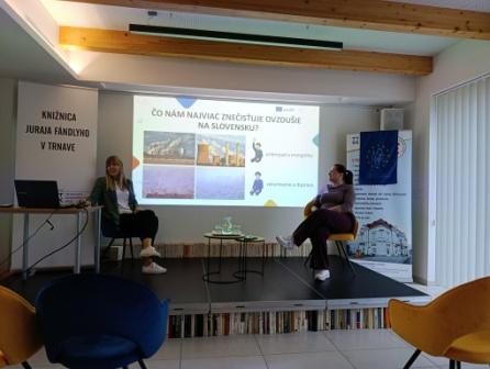 V komornej a príjemnej atmosfére záhradnej čitárne odborníčky na danú problematiku ozrejmili, prečo sa sleduje kvalita ovzdušia, aký vplyv majú častice, ktoré vdychujeme na naše zdravie, aká skupina obyvateľstva je najviac ohrozená i aká je kvalita ovzdušia na Slovensku či priamo v Trnavskom kraji a ktorých 17 obcí bojuje so zhoršenou kvalitou vzduchu, kde hlavnú príčinu znečistenia predstavuje lokálne vykurovanie.