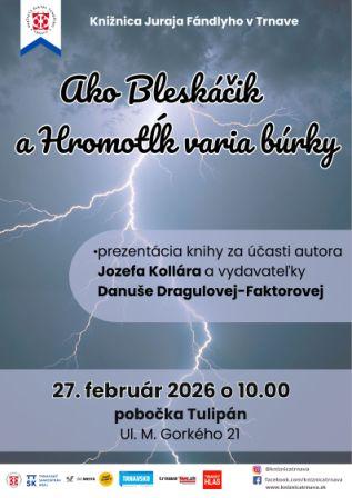 Malých čitateľov a čitateľky pozývame na prezentáciu knihy za účasti autora Jozefa Kollára a vydavateľky Danuše Dragulovej-Faktorovej. Jozef Kollár je Trnavčan, pôsobí však celý život v Bratislave. Vyštudoval žurnalistiku na Filozofickej fakulte UK v Bratislave. V rokoch 1991 – 1992 pôsobil ako reportér mládežníckeho týždenníka Kamarát a neskôr ako reportér v denníku Nový čas. Má však na konte aj viacero kníh, pre dospelých, aj pre deti. Z tvorby pre deti spomenieme Keď ťa chytím, tak ťa zjem, Tri mačiatka či Mestečko pod lopúchom, pre mládež Trapoška a Izba snov. Určite o nich zaujímavo porozpráva.
