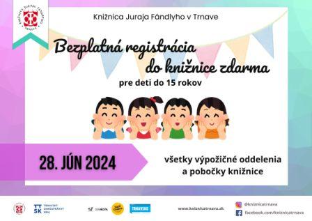 Knižnica Juraja Fándlyho v Trnave ponúka svojim detským čitateľom a čitateľkám v posledný školský deň 28. júna 2024 bezplatnú registráciu. To znamená, že všetci návštevníci a návštevníčky knižnice do 15 rokov môžu v uvedenom dni požiadať o bezplatnú registráciu (prítomnosť jedného z rodičov nutná kvôli vypísaniu prihlášky) alebo bezplatné predĺženie svojho členstva a tým pádom si úplne ZDARMA požičať knihy na prázdniny či dovolenky. Platí to pre hlavnú budovu aj pobočky knižnice. Leto tak môže byť plné príbehov a čitateľských zážitkov. A to všetko BEZ POPLATKU.