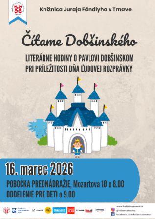 Výročie narodenia nášho najznámejšieho zberateľa ľudových rozprávok Pavla Dobšinského (16. marec 1828) oslávime v oddelení pre deti aj v pobočke na Prednádraží. Tety knihovníčky si pri tejto príležitosti pripravili literárne hodiny o jeho živote a tvorbe.