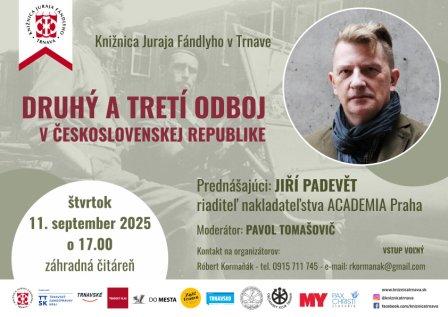 V spolupráci s Občianskym klubom vás pozývame na prednášku českého spisovateľa, knihkupca a vydavateľa Jiřího Padevěta. Je riaditeľom vydavateľstva Academia, autorom historických kníh, napríklad Průvodce protektorátní Prahou (2013), Krvavé finále (2015), Krvavé léto 1945 (2016) a krátkych próz Poznámky k dějinám (2014), Ostny a oprátky (2018) a Sny a sekyry (2019). Na internetovej televízii Seznam uvádza program Krvavé roky - o miestach spojených s nacistickou a komunistickou tyraniou. Je držiteľom ceny Magnesia Litera v kategóriách Kniha roku a Literatúra faktu.