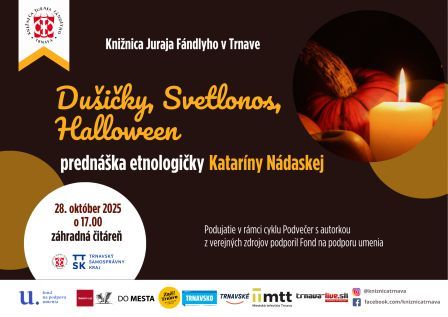 Do záhradnej čitárne príde v rámci cyklu Podvečer s autorkou odprezentovať prednášku o sviatkoch, ktoré sa viažu k jesennému obdobiu – Dušičky a Halloween.