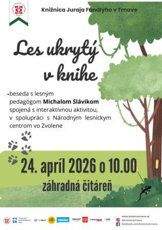 Apríl je aj Mesiacom lesov, tak sme pre našich malých čitateľov a čitateľky pripravili v spolupráci s Národným lesníckym centrom vo Zvolene stretnutie s lesným pedagógom Michalom Slávikom spojené s interaktívnou aktivitou. Snažíme sa zvýšiť povedomie o hospodárení, ochrane a trvalo udržateľnom rozvoji všetkých typov lesov v prospech súčasných a budúcich generácií.