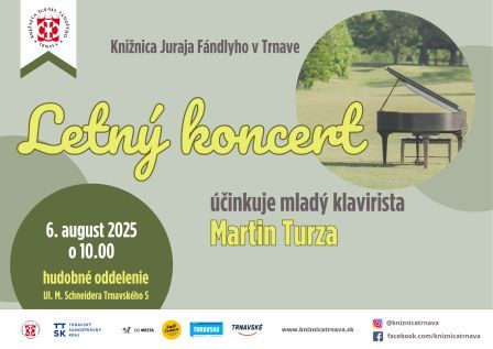 6. august o 10.00 - hudobné oddelenie, Ul. M. Schneidera Trnavského 5