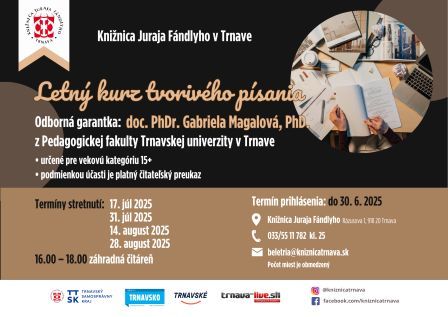 Letný kurz tvorivého písania sa bude konať počas letných prázdnin v záhradnej čitárni knižnice.