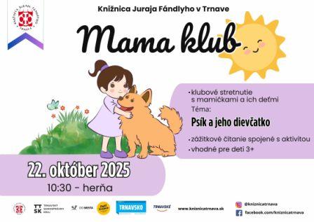 Obľúbený Mama klub pre všetky mamičky či oteckov a ich malé ratolesti pozýva tentokrát na zážitkové čítanie z knihy Psík a jeho dievčatko spojené s aktivitou. Vhodné pre deti 3+. Budeme si nielen čítať, ale sa aj zabávať.
