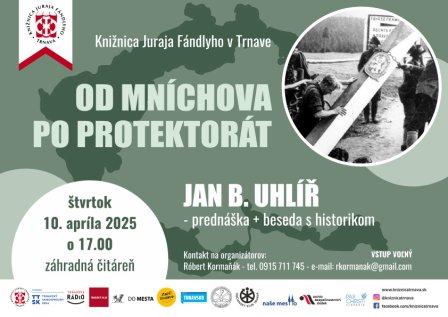 Pozývame vás na prednášku českého historika Jana Borisa Uhlířa: Od Mníchova po protektorát.