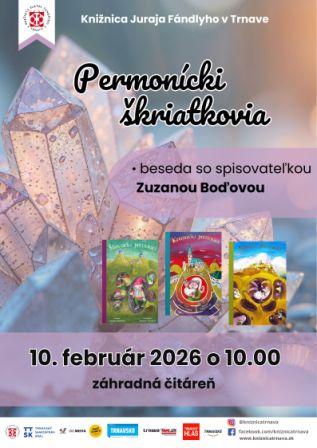 Deti, ktoré rady čítajú o permoníkoch a škriatkoch, pozývame na besedu so spisovateľkou Zuzanou Boďovou. Debutovala v roku 2012 súborom vtipných a originálnych príbehov Všelijaké rozprávky (ACP AuComp), ktoré doplnila aj o vlastnoručné ilustrácie. Nasledovali knižky Bojazlivé strašidielko (2013, Erad), Rozprávky do chrumkava prepečené (2014, Erad), ktoré vyšli v roku 2014 dvojjazyčne v angličtine a v češtine; obe s ilustráciami Jarmily Šaušovej. Po nich nasledovala trilógia čarovných príbehov práve o baníckych škriatkoch Štiavnickí permoníci (2015, Erad), Kremnickí permoníci (2016, Erad) a Spišskí permoníci (2017, Erad), pričom na posledných dvoch už spolupracovala so smolenickým ilustrátorom Filipom Horníkom. Táto úspešná autorská spolupráca pokračovala knižkou Netopierik, zombíci & čudo z Marsu (2016, Erad), v ktorej sa opätovne vrátila ku tvorbe dvojjazyčných kníh pre deti. Filip Horník prispel svojimi ilustráciami aj do posledných kníh Zuzany Boďovej Mina a Riman Maximilián (2019, Erad), Dinosaury na dobrú noc (2019, Erad) a Dinosaury na dobrú noc – Vo vesmíre (2020, Erad), v ktorých zábavným a poučným spôsobom spracováva námety z histórie. O svojich knižkách určite rada porozpráva svojim malým čitateľom a čitateľkám.