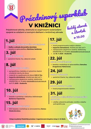 Autorku poézie a prózy pre deti i dospelých Danušu Dragulovú Faktorovú detskí čitatelia a čitateľky dobre poznajú. Častokrát už besedovala v našej knižnici. V rámci Prázdninového superklubu príde porozprávať nielen o svojich početných knihách, ale na workshope ukáže deťom, ako a tvorí časopis.