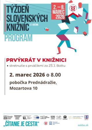 Tešíme sa, že pri príležitosti Týždňa slovenských knižníc navštívia po prvýkrát našu pobočku na Prednádraží malí prváčikovia zo ZŠ J. Bottu. Stretnú sa s knihami, ale máme pripravené aj hry a súťaže.