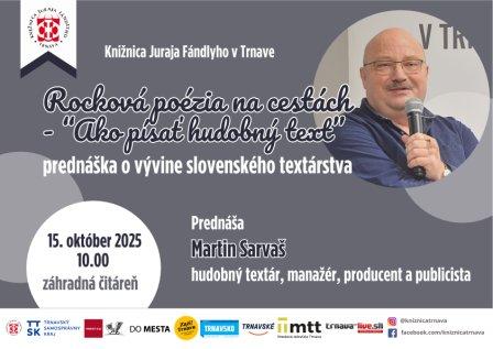 Kto by nepoznal hity Tublatanky ako Šlabikár, Vo veľkej škole dní, Skúsime to cez vesmír, Dnes, Láska drž ma nad hladinou, Pravda víťazí či Loď do neznáma. Sú to všetko texty Martina Sarvaša, ktorý slovenskú hudobnú scénu pozná nielen z pozície rešpektovaného textára, ale aj z pohľadu manažéra, producenta a publicistu. Vyštudovaný architekt začal písať texty už ako študent gymnázia. Sarvašov talent sa prejavil začiatkom 80. rokov minulého storočia. Jeho text pre skupinu YPS sa v roku 1982 objavil na singlovom nosiči vtedy populárnej skupiny, a odvtedy, až do vydania svojej knihy Zatiaľ toľko, napísal stovky textov.