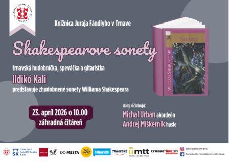 23. apríla 1616 (pred 410 rokmi) zomrel anglický dramatik, básnik a herec, najvýznamnejší spisovateľ v anglickom jazyku a svetový dramatik. Keď hádate, hádate správne. Je to William Shakespeare. Trnavská hudobníčka, speváčka a gitaristka lldikó Kali pri tejto príležitosti pripravila projekt, v ktorom predstaví zhudobnené sonety Williama Shakespeara, na akordeón hrá Michal Urban, husle Andrej Miškerník. Nenechajte si ujsť tento hudobno-poetický zážitok!