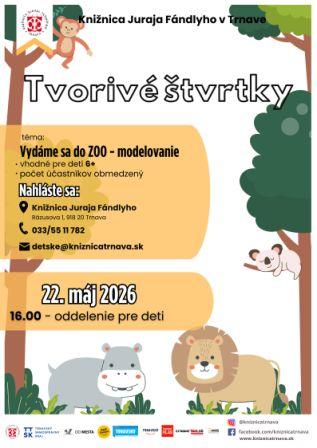 Na štvrtkových tvorivých dielničkách sa vydáme do ZOO. Vhodné pre všetky šikovné ručičky detí 6+. Čakáme vás!