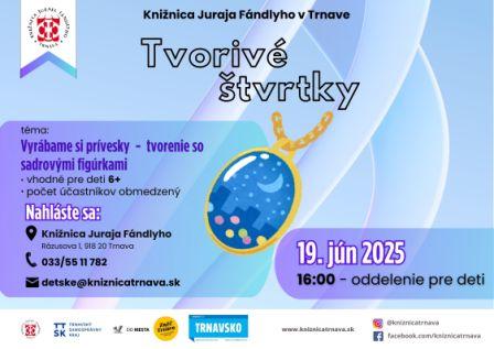 Pozývame vás do našich tvorivých dielničiek. Tentokrát si s knihovníčkou Henrietkou skúsime vyrobiť prívesky zo sadrových figúrok. Vhodné pre deti 6+ .