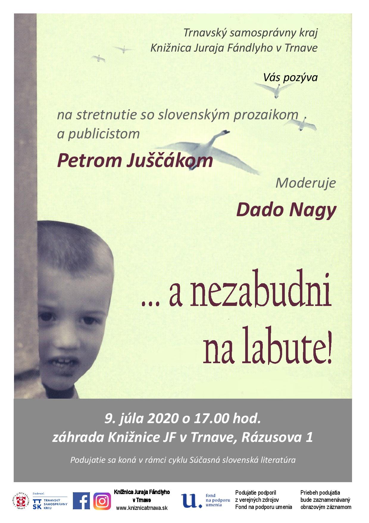 Vo štvrtok 9. júla 2020 o 17.00 hod. vás pozývame do knižničnej záhrady na stretnutie s prozaikom a publicistom Petrom Juščákom, ktoré moderuje Dado Nagy.
